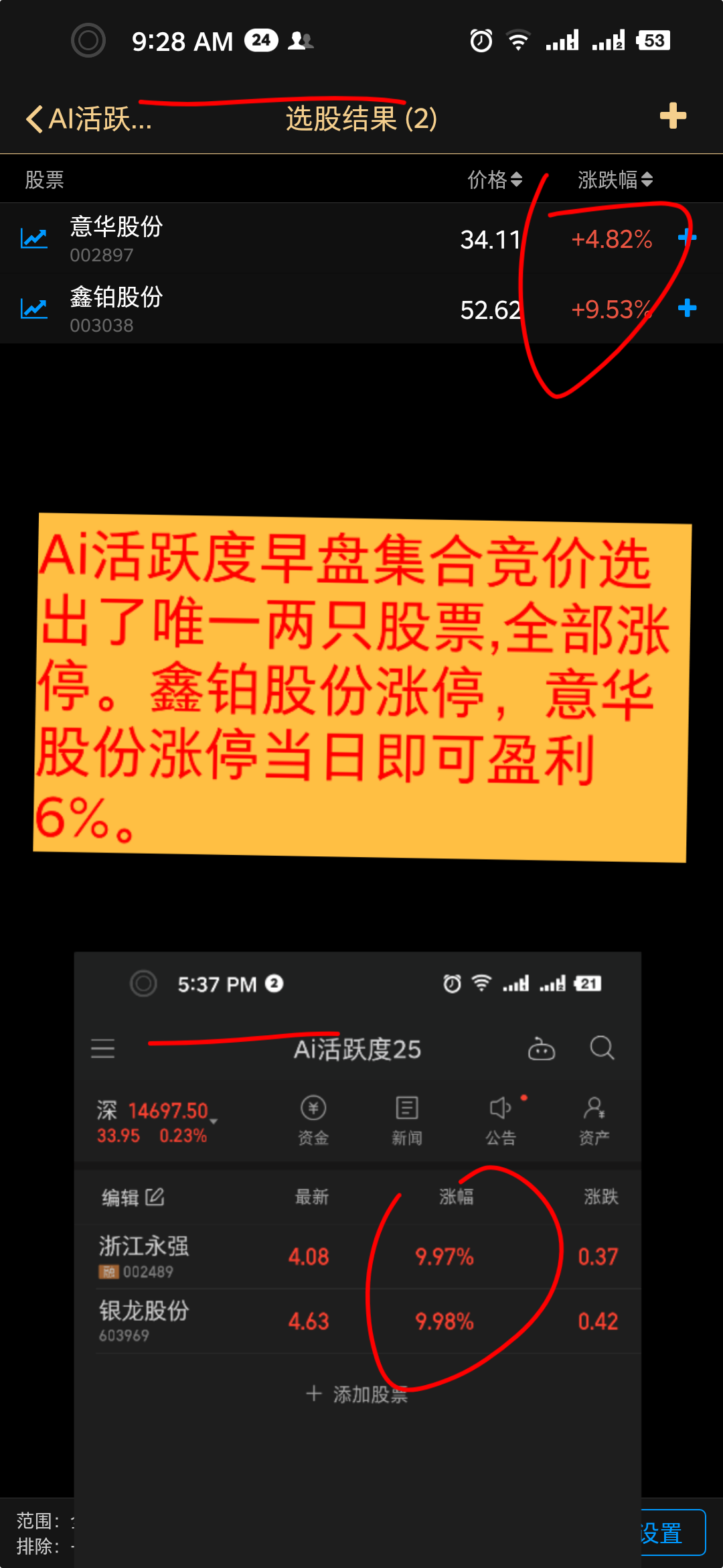 AI活跃度⭐专业捉妖股🔥拥有机构思维乘胜追击✨ 关注公众号“ 肥尾量化平台 ”,公式 一键选股 🌟A.I.机构活跃度有很多用法,可以参考同花顺AI机构活跃度精准看盘指标后续陆续更多用法做说明⭕现在只介绍妖做法。指标出现标志都是成妖个股。⭕成妖表示机构参与度较大的股票,机构有可能乘胜追击⭕有可能拉出你怀疑的高度⭕专业捉妖股,拥有机构思维乘胜追击,🏦可以使用小仓位套利模式,博单车变摩托。
