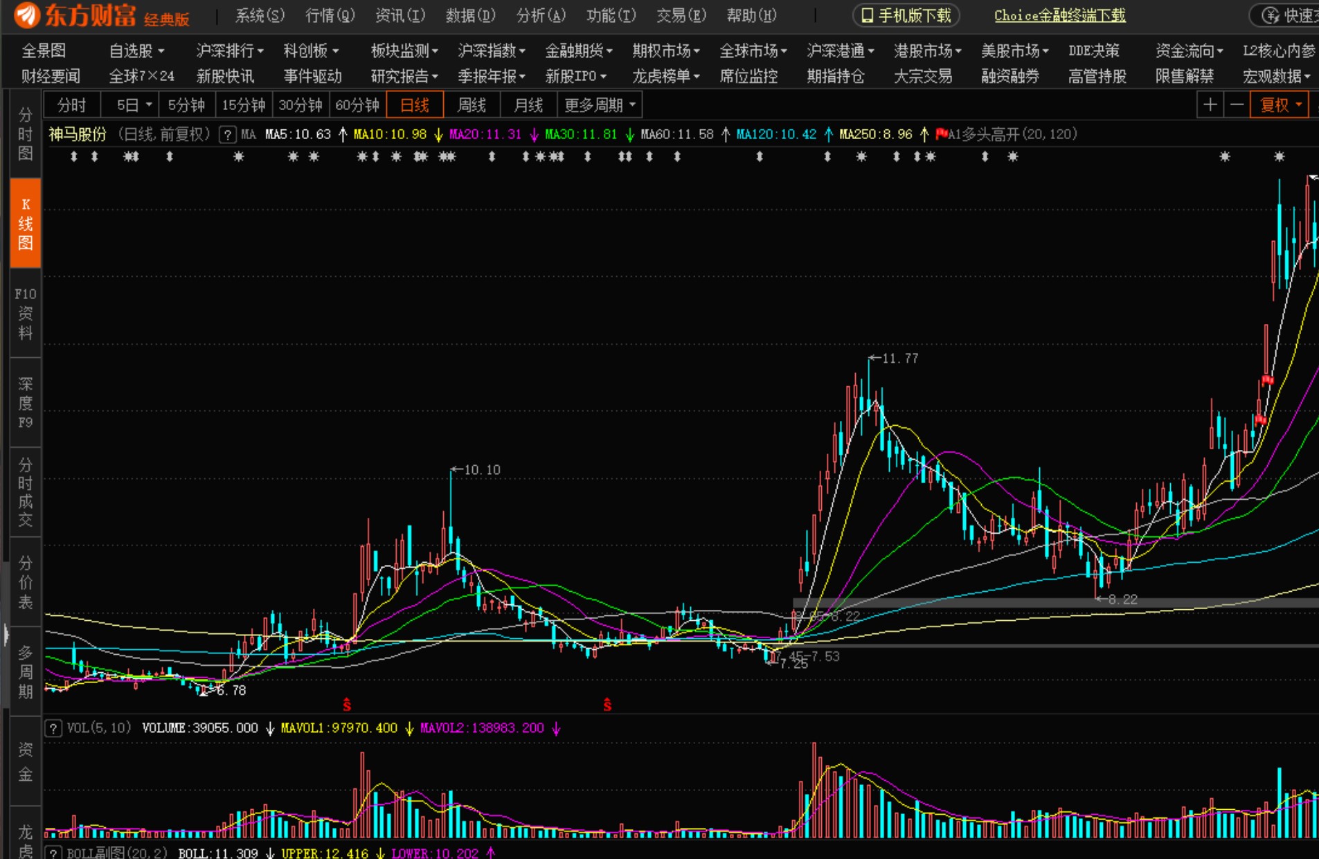 多头排列形态,上方压力小,当日高开 关注公众号“ 肥尾量化平台 ”,公式 一键选股 股票K线形态已形成多头排列趋势,股价接近半年高点,上方压力小,当日又高开,代表该股票长期和短期趋势都强势,有沿五日线向上加速的态势,配合当前热点选股,有短线起爆潜力。注意:当日在分时均线上方买。