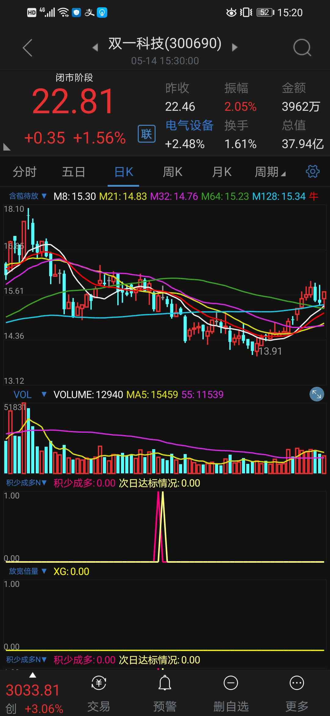 今买明卖,积少成多。 关注公众号“ 肥尾量化平台 ”,公式 一键选股 今买明卖超短线指标,收盘前买入,第二天冲高一个点卖出,成功率大概百分之八十五。一个指标能不能赚钱,不光靠成功率,还要看个人的操作策略以及个人心态。
