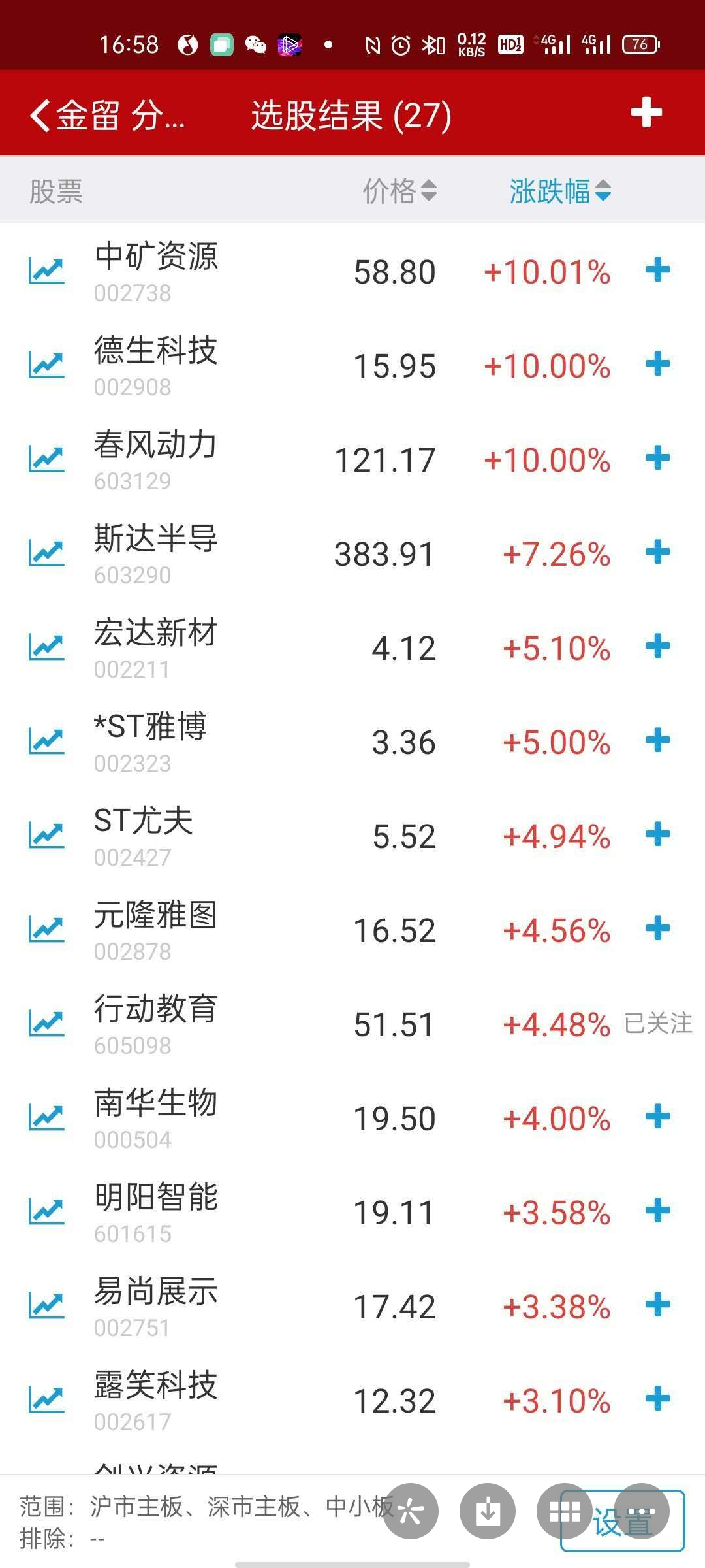 一,9.26选票 选出来后 涨幅第一名的往往开盘就能涨停 个人建议选股选涨幅在4%意思或涨幅前5名的票