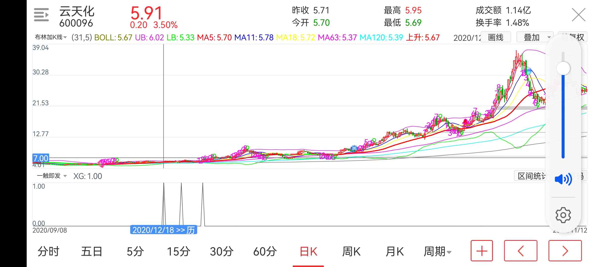 一触即发升级版美人肩888 关注公众号“ 肥尾量化平台 ”,公式 一键选股 均线多头排列的股票,买点是难题,往往买在高点,本公式是在均线多头排列的股票,寻找整理到位的股票,避免追高,买在起涨点!选出的不一定都是牛股,但牛股一定在里面!长线牛股的买点也能找到!云天化在6元处出现三次信号,开启长牛行情,最高涨到30多! 云天化在6元附近出现三次一触即发,开启长牛行情!