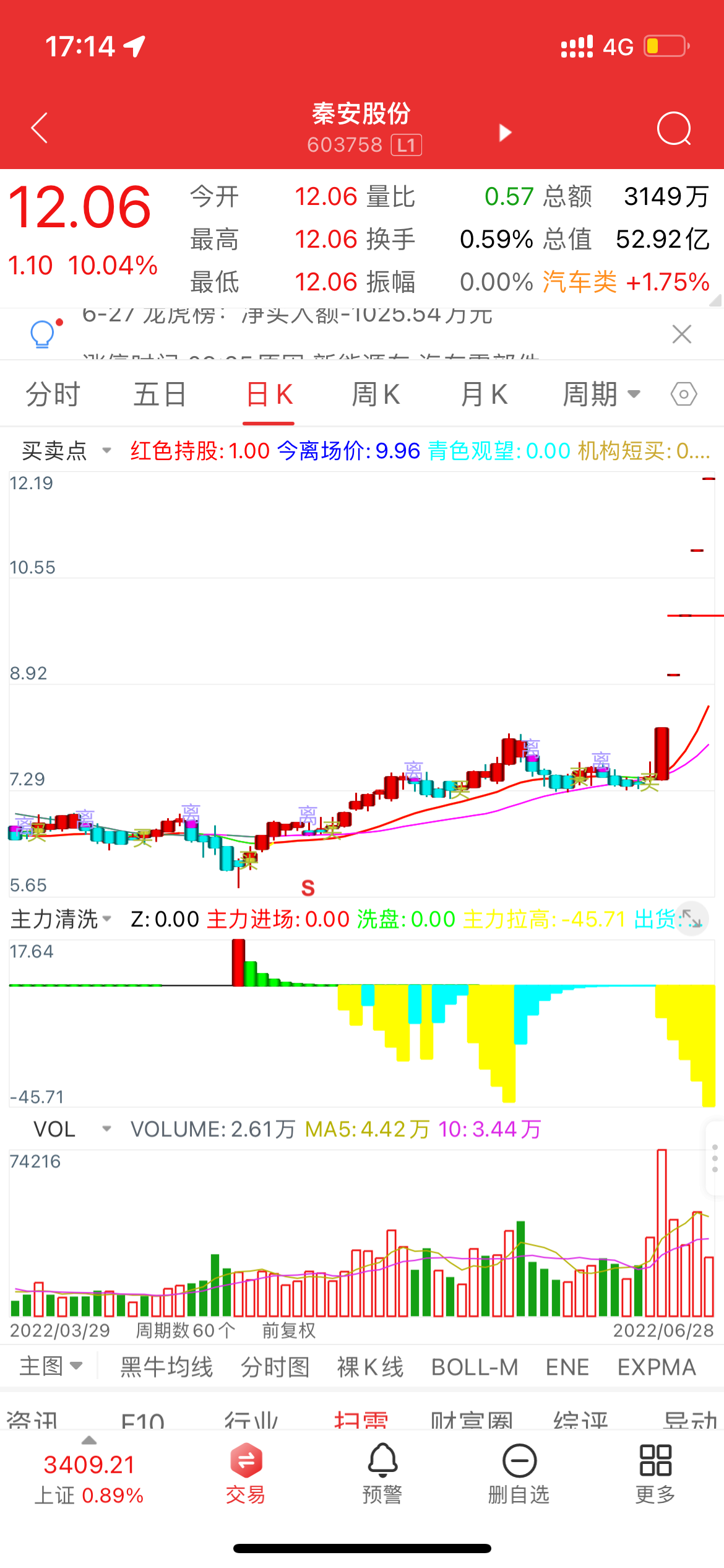 使用方法:早上十点和中间有空就一直不间断选股,时不时会出现好股,好股随着时间不断出现,如果一天选出好股较多,证明大市也较好,如果一天只选出几只,那么也证明大市应该不是很好。选出来10来支股票都是专家准备拉升的股票。分析这10支股票基本面,如果是热门题材最好,涨停几率89%,部分是专家拉升测试压力,所以一定要看清楚,专业人士介入此公式最佳。短线起爆点,炒股必备。 公式要多测试,寻求自己合适的股票介入。 本公式仅供参考,赢亏自负。在股市如何赚钱,方法只有一个,那就是学习技术,总结方法。千万不要像有些股民,每天亏钱,还不爱学习,每天只会在网上骂专家,骂技术分析无用,骂别人马后炮。新股民很容易犯一个错误,股价一涨就慌忙卖出,然后看着它一路上涨。防止这个错误的方法是训练。俗话说:会买是银,会卖是金。如果买了好的股票,未能选择好的卖出时机,将会给股票投资带来诸多遗憾。