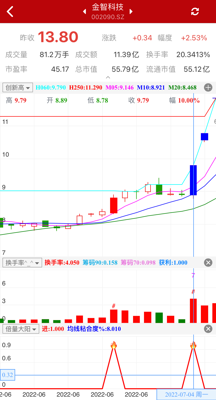 换手率^_^:成交量的归一化指标 关注公众号“ 肥尾量化平台 ”,公式 一键选股 换手率换手率=成交量/流通股数x100%换手率的意义:换手率小于1%,极度不活跃;换手率1%~3%,一般正常态;换手率3%~7%,活跃状态换手率7%~10%,比较活跃换手率10%~15%,非常活跃换手率大于15%,异常活跃故此,以3%作为活跃不活跃的分界,大于3%的为活跃,小于3%的为不活跃。高量柱:+:放量过前五,换手率大于3%倍量柱:=:成倍数放量,换手率大于3%高倍量:#:倍量过前五,换手率大于2%