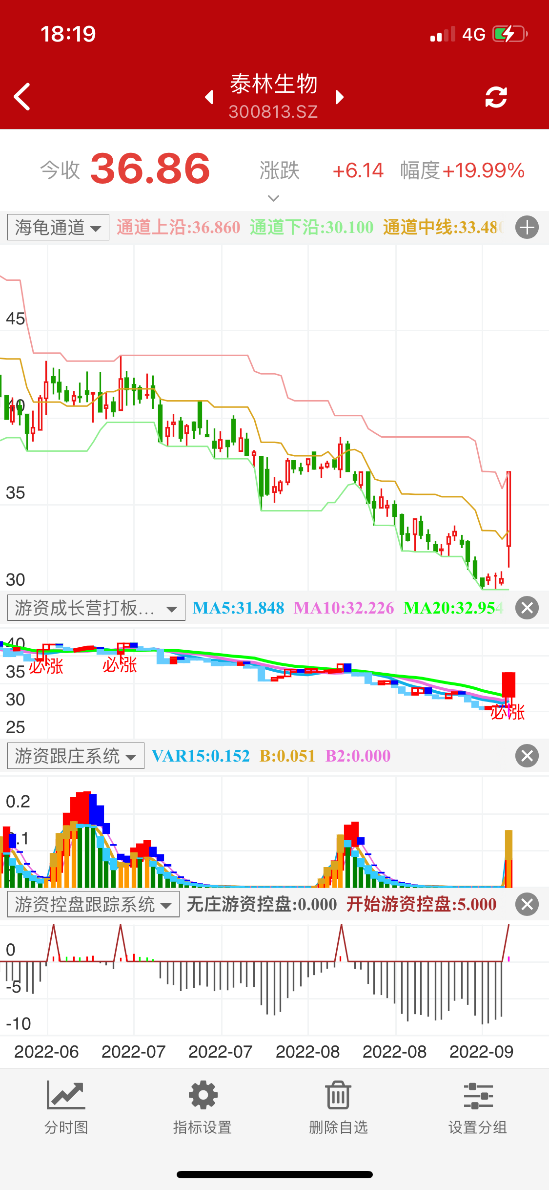 1.经过一段时间的下跌后,庄家已经开始介入。 2.在长时间的下跌和横盘过程中,庄家已经吸够筹码。 3.首次尝试拉升试盘,测试市场对个股的关注度,决定未来是否启动拉升。 5.低吸虽然风险偏低,但为了提高胜率和赚钱效率建议关注大盘企稳后再进。 6.选出股票后建议结合"游资控盘指标"和了"游资跟庄指标"进行分析过虑效果更好。