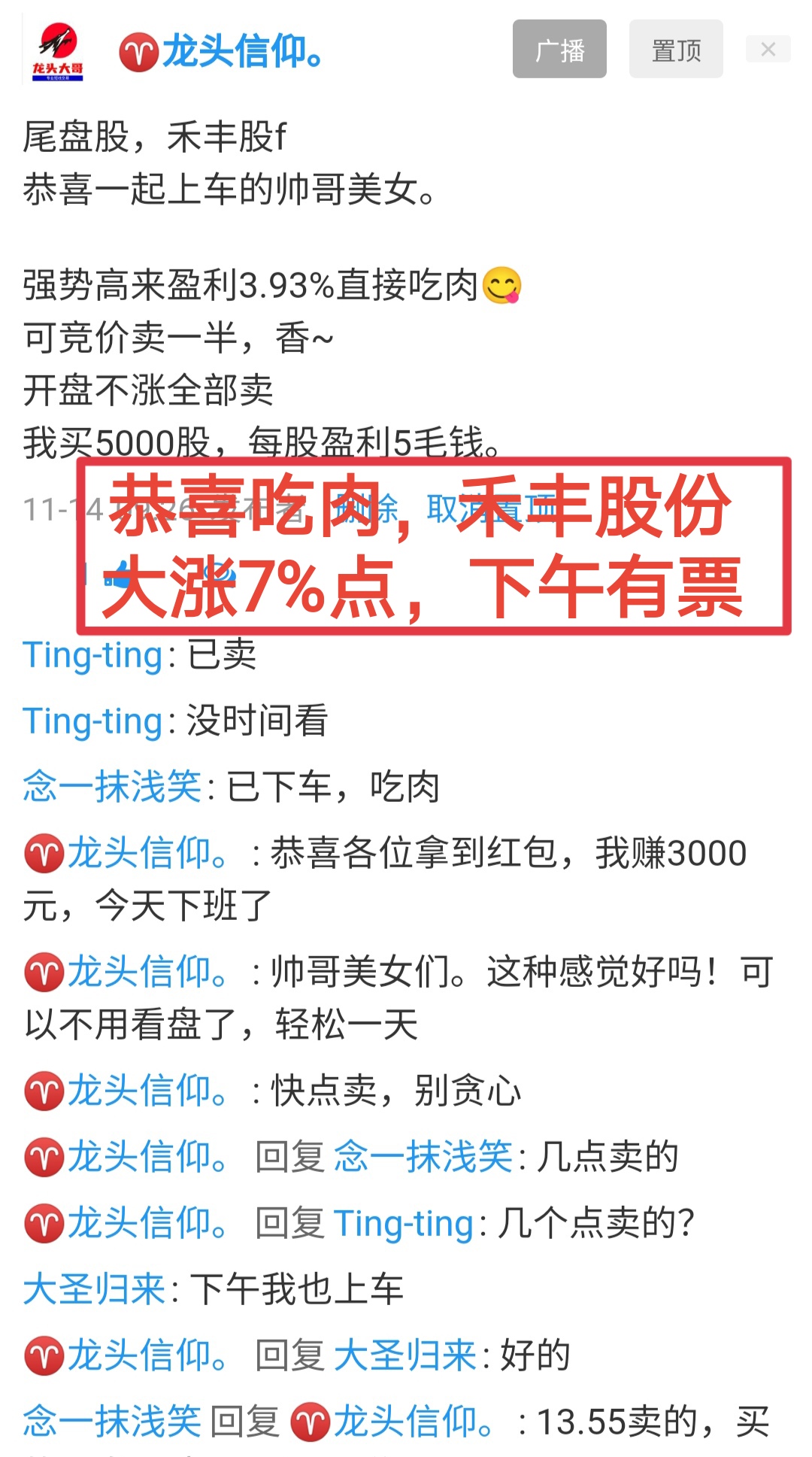 😄已订阅帅哥美女,禾丰股份,赚7%下车。 关注公众号“ 肥尾量化平台 ”,公式 一键选股 短线核心玩法 吃肉必须卖出的原则,你才能不断前进,以短频快的交易原则。 期望,已成功订阅,短线擒牛㊙️圈公式,所有帅哥美女天天跟我赚几个点。 下午继续新票,一起吃肉🥩。