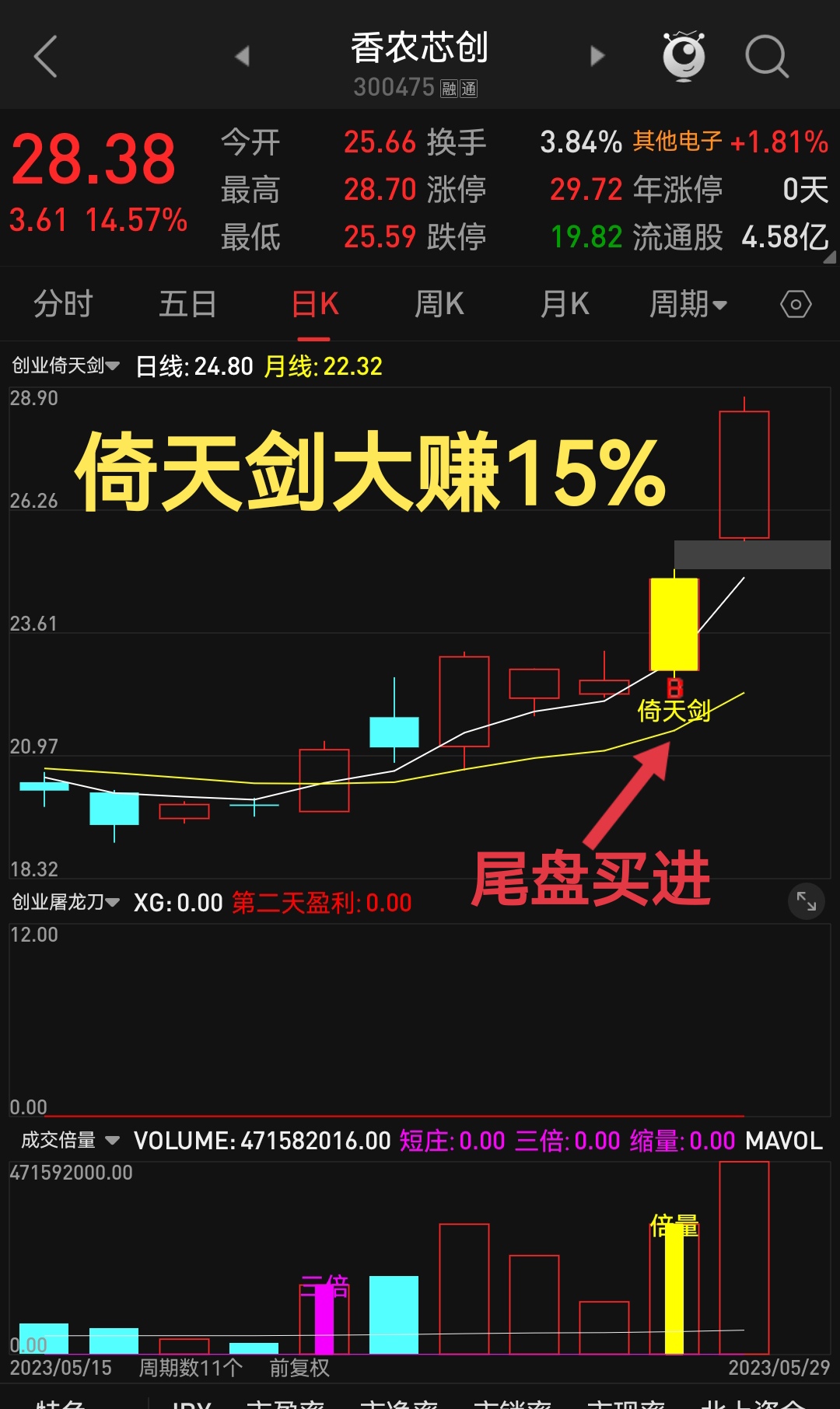 倚天剑出票,300475大赚15%,强👍 关注公众号“ 肥尾量化平台 ”,公式 一键选股 💥本公式专做创业板。💥有买点、有卖点。💥次日盈利2%~20%分批卖出下班。🇭🇰尾盘选票2.50分选票选长一把倚天剑,竞价2.57分挂高2毛钱买进收盘即可成交。🇭🇰(订阅领取限时福利)一次订阅🈵3个月送【分时买卖神器】指标一次订阅🈵4个月送【主力操盘主图】指标