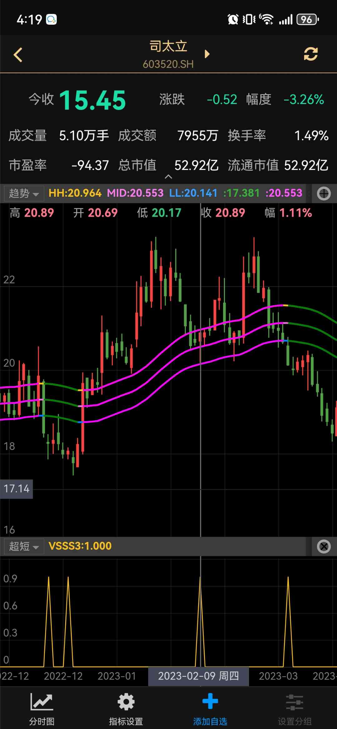 超短,胜率80%-90% 关注公众号“ 肥尾量化平台 ”,公式 一键选股 这个指标适合上涨趋势、震荡趋势,资金关注度明显的票,不适合下跌趋势。我本人只喜欢在主图紫色上升区域回调时出现这个指标的时候买进。策略啥的我的策略是尾盘买进,第二天最高价卖出,不管涨跌,胜率90多,实际上的话肯定卖不到最高点啦,建议有肉就走,这个指标每天出票还是很多的,一年回测五万多只票90%胜率很吊了,实际个人操作的话胜率在70%-80%左右吧。