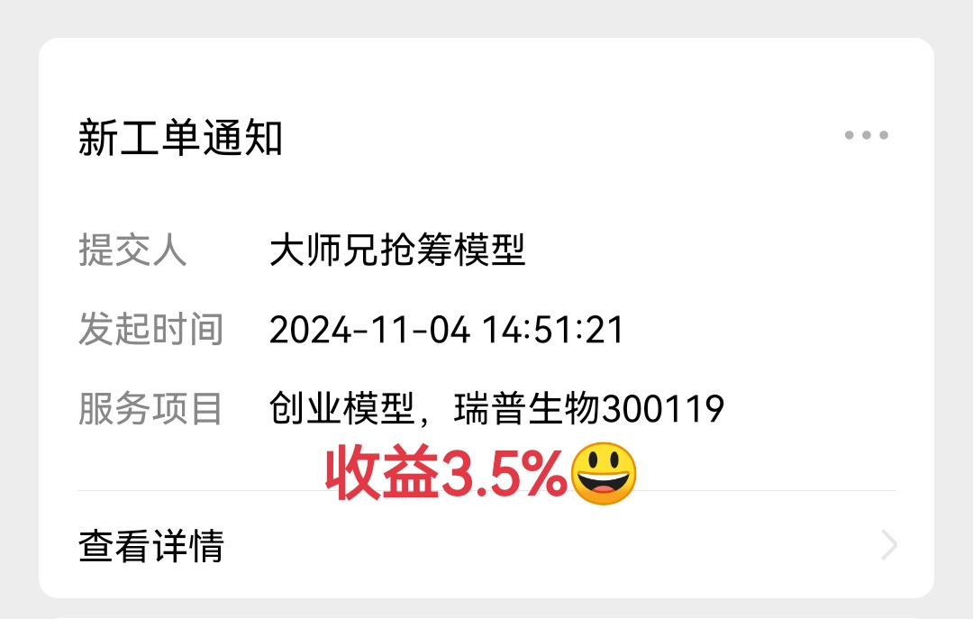 抢筹模型推送一股【中科三环】涨停10%😃 关注公众号“ 肥尾量化平台 ”,公式 一键选股 800金币抢 模型,300优惠中,昨日两股全部吃大肉,欢迎订阅一起躺赢。 主板模型【中科.三环】涨停10%😃 创业模型【瑞普.生物】收益3.5% 主板模型【欣贺.股份】涨停12%😃 创业模型【东土.科技】收益3.6%主板模型【襄阳.轴承】收益4.5%创业模型【真兰.仪表】收益6%三天6股全部吃大肉,欢迎订阅一起躺赢。 原价800金币/限时优惠300金币