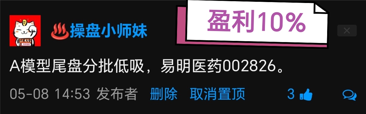 🎉欢迎订阅置顶第一个或第二个,涨停A模型,B模型,五月份胜率百分百,天天吃肉!订阅三个月,领取指标一份!
