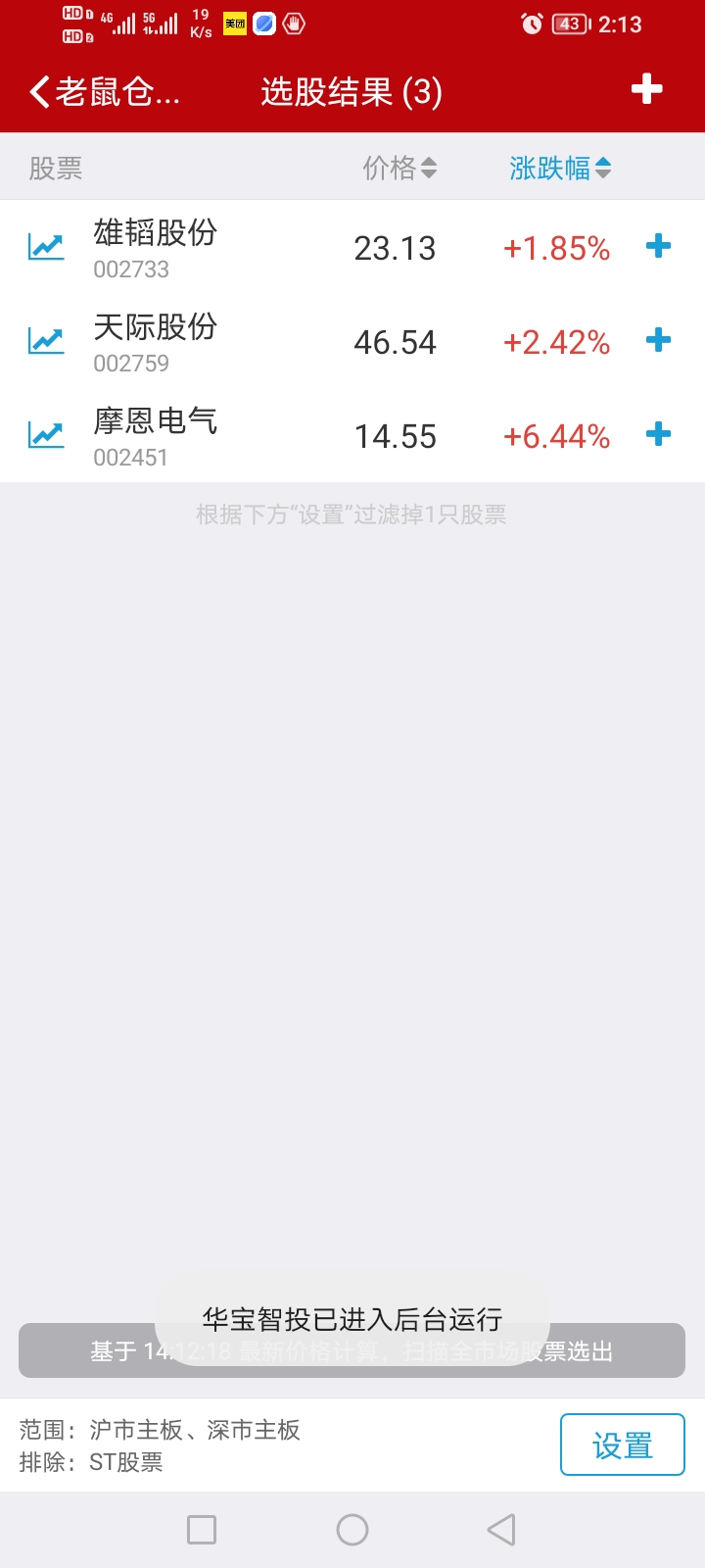 老鼠仓回仓线 关注公众号“ 肥尾量化平台 ”,公式 一键选股 1.中线选股指标,找到趋势向上发力股票。2.早盘开始选,成功率较高。需要参考其他指标再买入。3.在盘中随时选股,选出后不要急着买入,观察大盘是否稳定。4.买入时一定参考其他指标,确定股价位置是否回升,不要盲目买入。5.仓位不要太高(严禁重仓),可以多买几只股票,利益与风险是并存的。6.第二天继续上涨持股,否则2-3天逢高有3-8%的利润就出局,再选股买入。【供验证参考,股市有风险,入市需谨慎!】需要源码请联系!