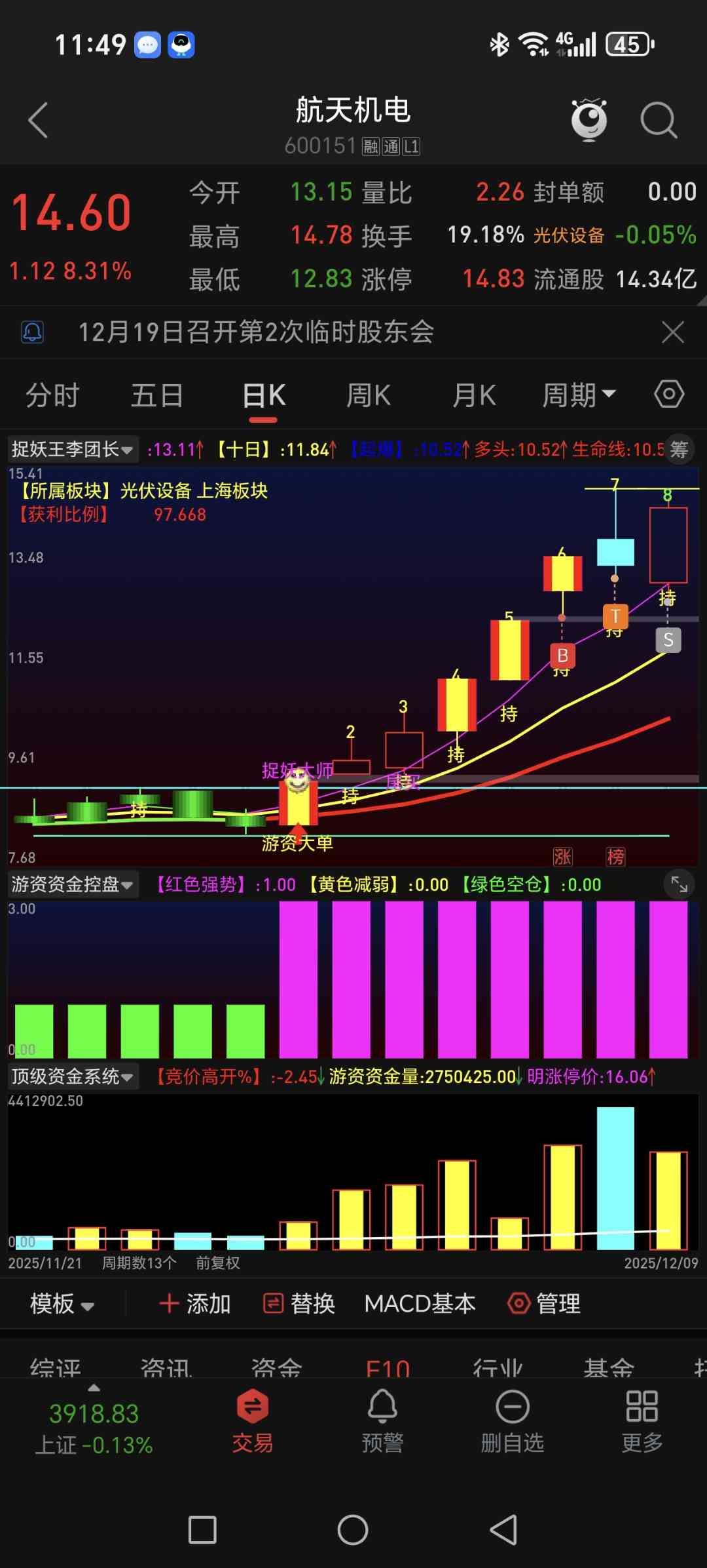 😈捉妖选出…云鼎/科技。后期2连板📈20%