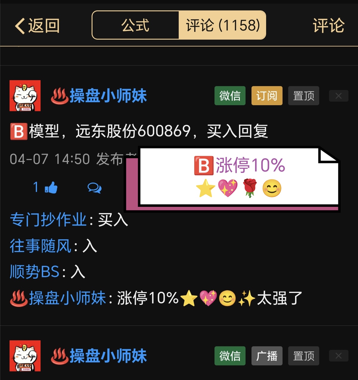 欢迎订阅置顶第一个公式或第二个公式,涨停A模型,趋势B模型,限时300金币,订阅三个月找我领取指标一份!