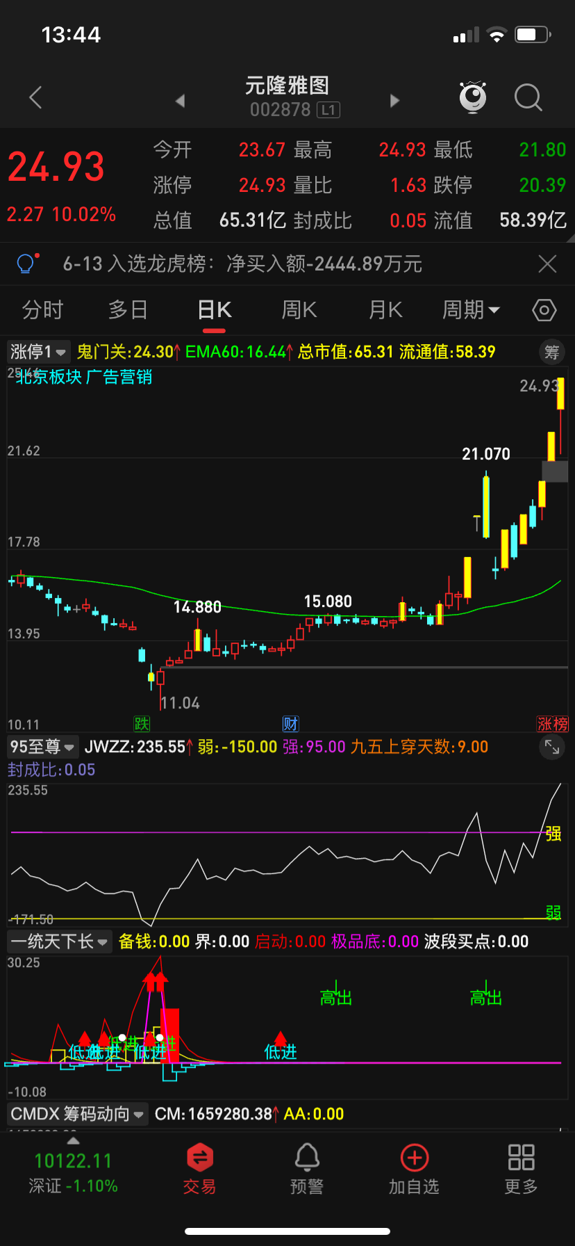 明天一进二9层涨停